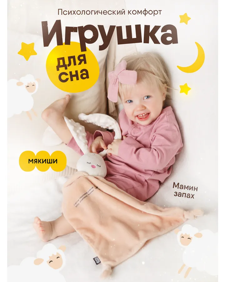 Игрушка-комфортер Мякиши мягкая Зайка Банни для сна для новорождённых