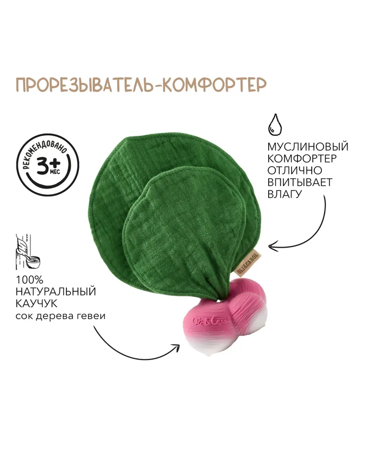 Прорезыватель OLI and CAROLПрорезыватель понравился. Он внутри пустотелый, я по фото ожидала, что будет цельным. Сначала показалось, что он недостаточно надут (как сдувшийся резиновый мячик), но, как показала практика, грызть так удобнее.