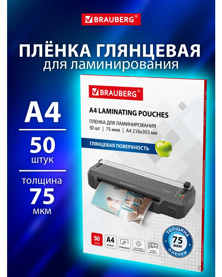 Пленка для ламинирования Brauberg А4 50 штук 75 мкм