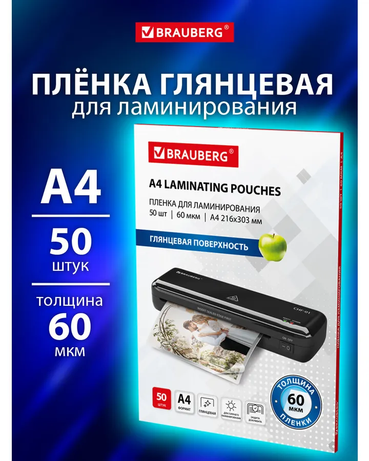 Пленка для ламинирования Brauberg А4 50 штук 60 мкм