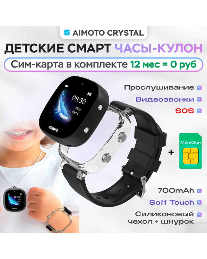 Детские смарт-часы с SIM-картой внутри Aimoto FreeStyle 4G c SIM картой Маруся Telegram WhatsApp Tiktok Роз и черн