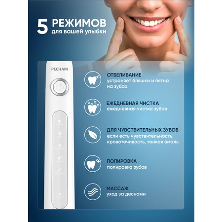 Зубная щетка электрическая PECHAMОчень понравилась щетка в использовании и красивая, удобная. При вопросах поддержка на высоте, сервисный центр моментально решает вопросы!