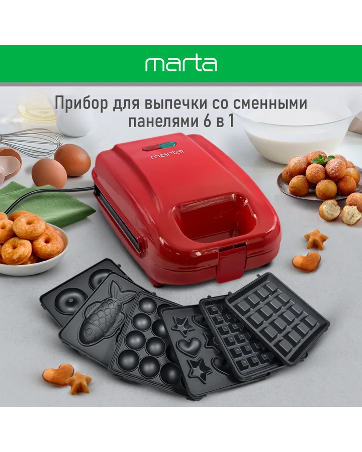 Прибор для выпечки MARTA MT-SM1737E красный рубин 6 в 1 со сменными панелями