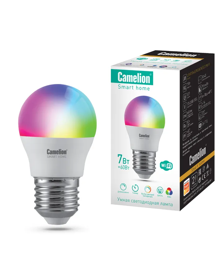 Лампа светодиодная Camelion LSH7/G45/RGBСW/Е27/WIFI