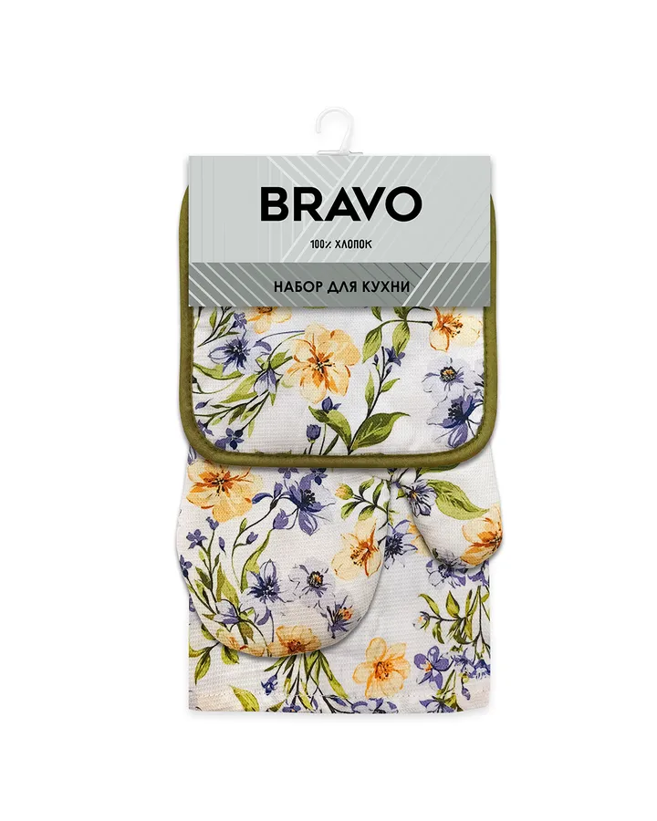 Набор кухонный BRAVO 3 предмета прихватка+рукавица+полотенце Цветы