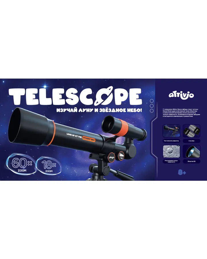 4Телескоп Attivio АстрономическийТо ли мы не настроили до крнца, то ли небо облачное, но мы нмчего не видим в него 🤷♀️