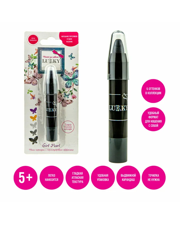 5Тени кремовые для век LUKKY с блёстками с аппликатором 6 цветовОтличные тени , брали на подарок девочке 6 ти лет