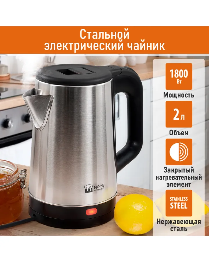 Электрочайник HOME ELEMENT HE-KT2312 черный жемчуг металлический