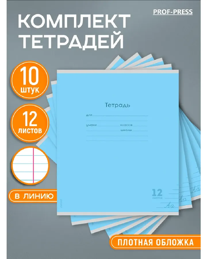 Тетрадь Prof-Press линейка 12 лист. 10 шт.
