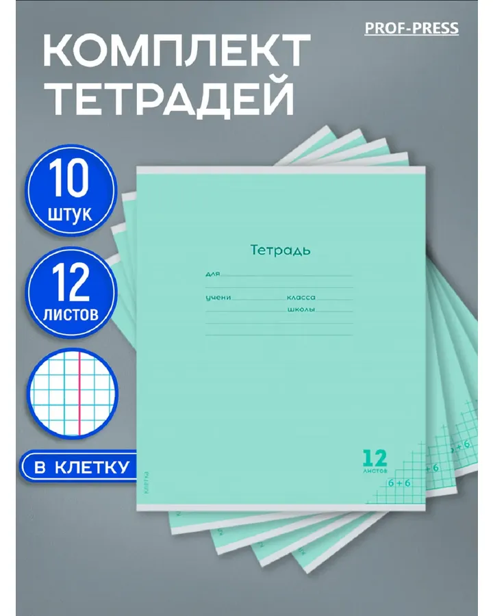 Тетрадь Prof-Press клетка 12 лист. 10 шт.