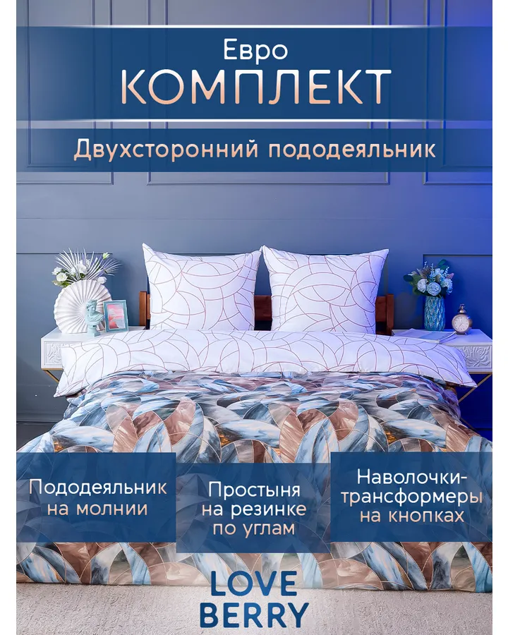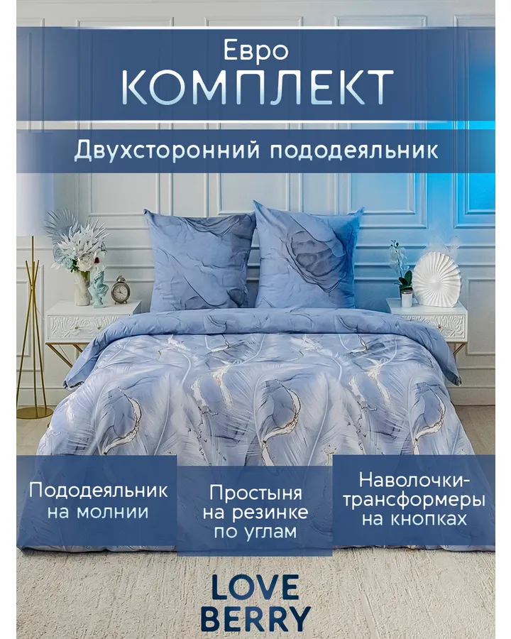 Комплект постельного белья LOVEBERRY Перья на мраморе евро 4 предм.