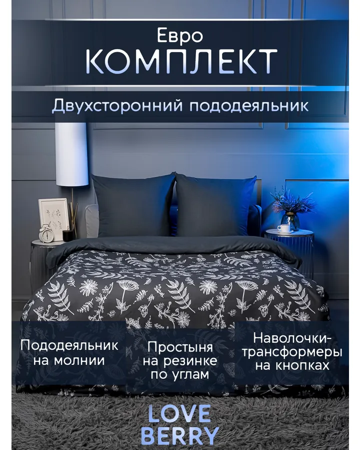 Комплект постельного белья LOVEBERRY Графит евро 4 предм.
