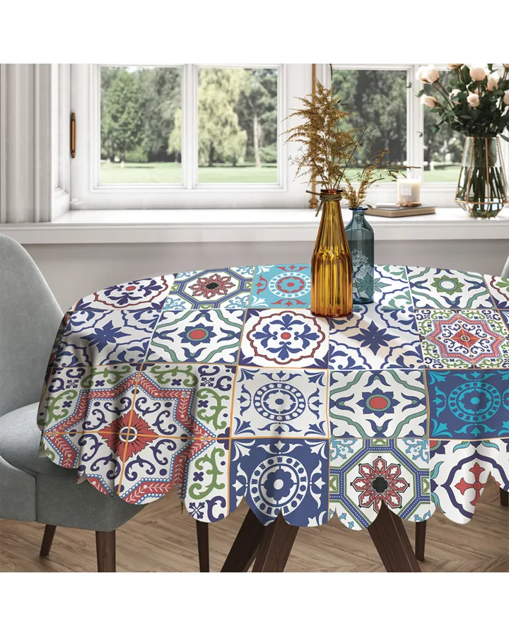 Скатерть круглая тканевая JoyArty Ажурные кругиПокупаю вторую, другой расцветки. Плотная. Мой кот не так быстро ее царапает.