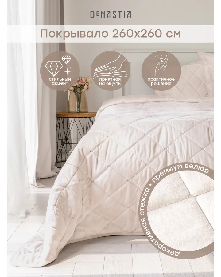 Покрывало DeNASTIA 240 x 240 см велюрКрасивое , хорошее покрывало.