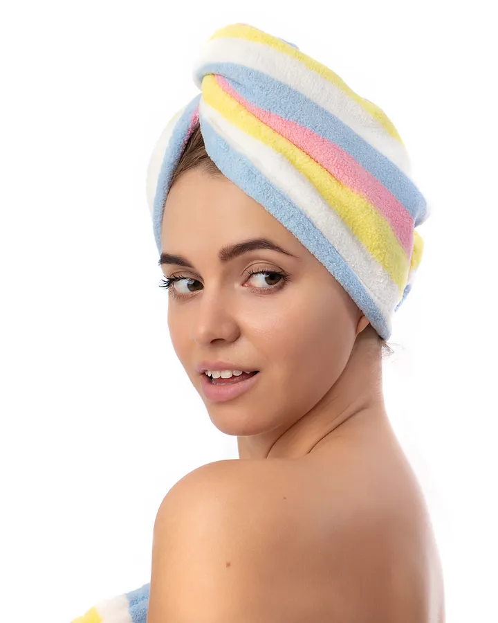 Очень понравился тюрбан для сушки волос. Не пересушивает волосы.
