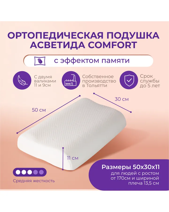 Подушка ортопедическая Asvetida 50 x 30 см