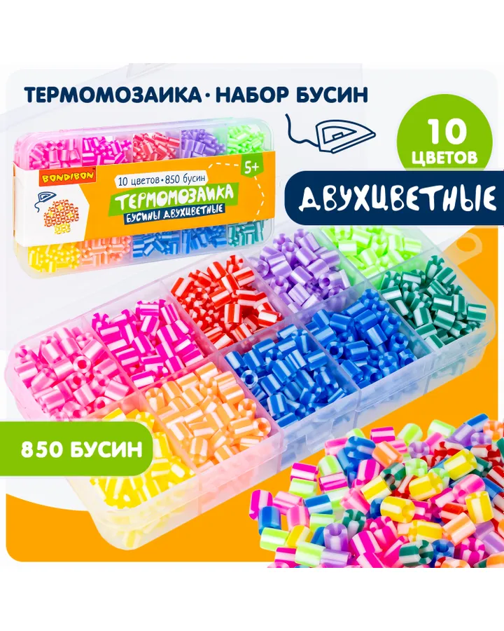 Термомозаика Bondibon набор 850 бусин 10 цветов