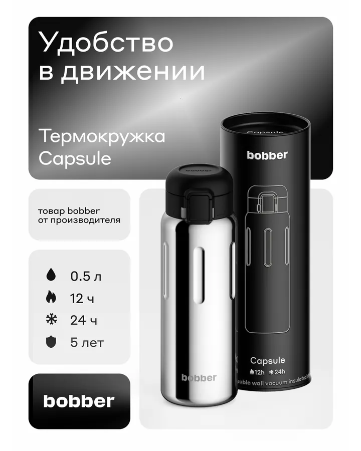 Термокружка для напитков Capsule 500 мл Bobber зеркальный