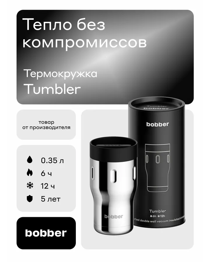 Термокружка для чая 350 мл Tumbler Bobber зеркальный