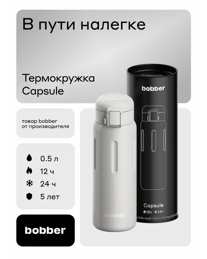 Термокружка для напитков Capsule 500 мл Bobber серый