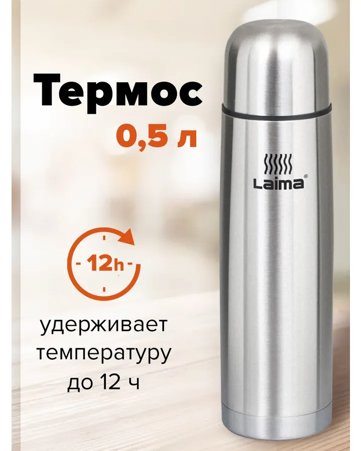 5Термос Лайма классический с узким горлом 1 л нержавеющая сталь синийТермос отличный! Держит тепло дольше, чем думала.