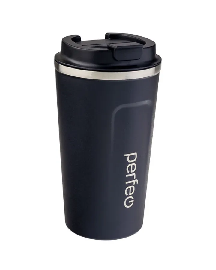 Термокружка Perfeo для напитков с прозрачной крышкой ручкой объем 0.35 л. темно-синий PF_C3732