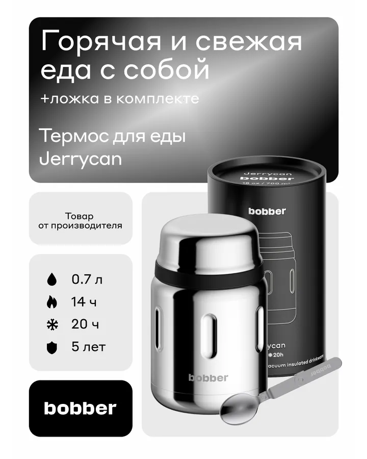 Термос для еды Jerrycan 700 мл Bobber зеркальный
