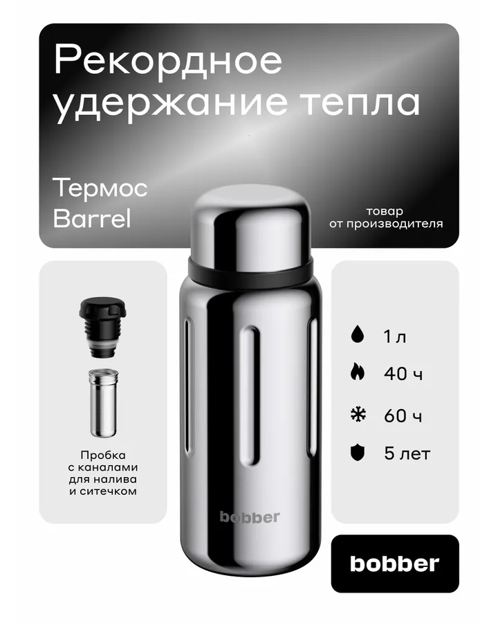 Термос для чая 770 мл Bobber Barrel зеркальный