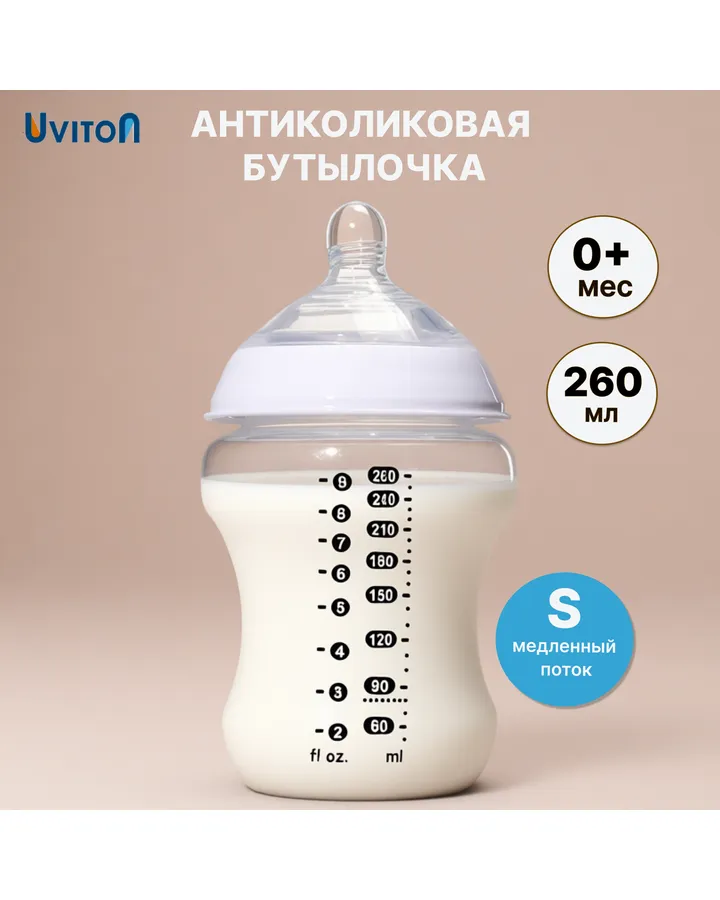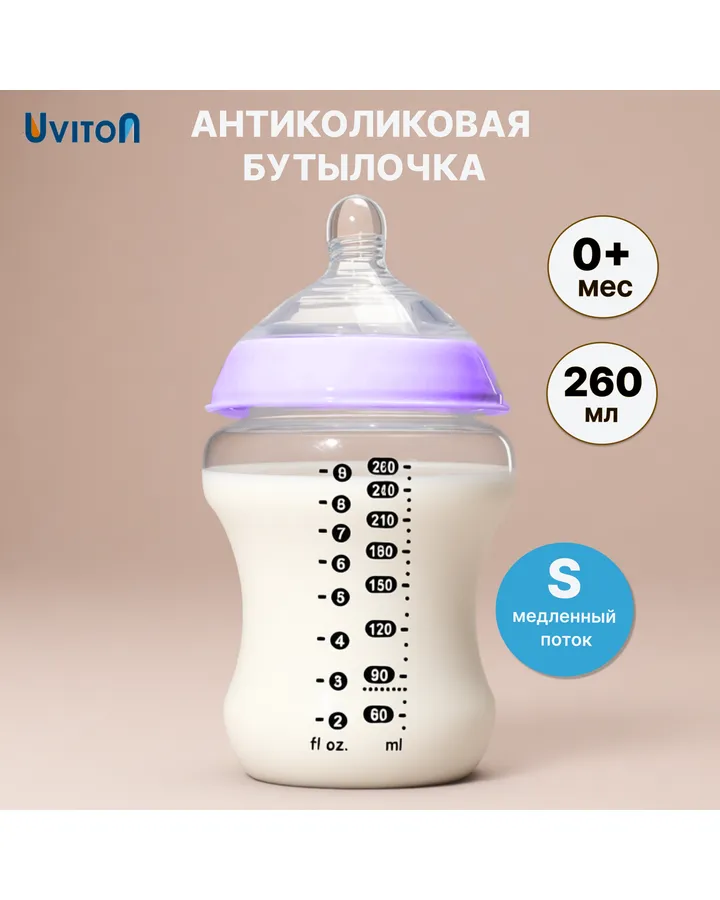 Бутылочка Uviton Anti-Colic 125 мл в ассортиментерешила попробовать бутылочки Ювитон после Авент. Из-за быстрого потока нам не подошли. Ребенок не успевает проглатывать всю смесь, часть течет мимо