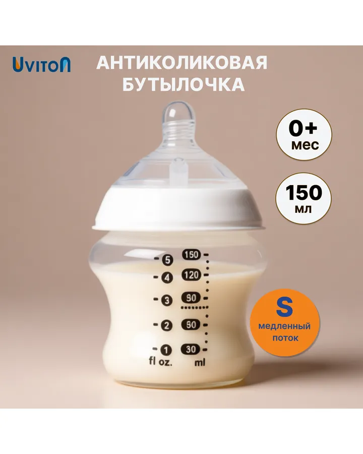 Бутылочка Uviton Anti-Colic 150 мл 1 шт. в ассортименте