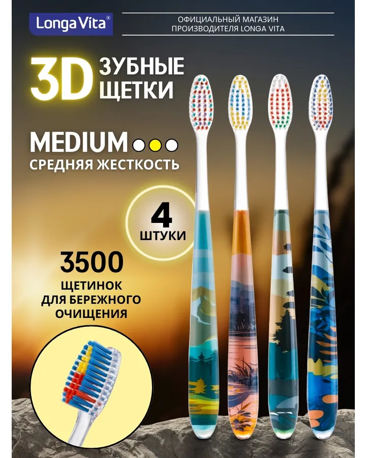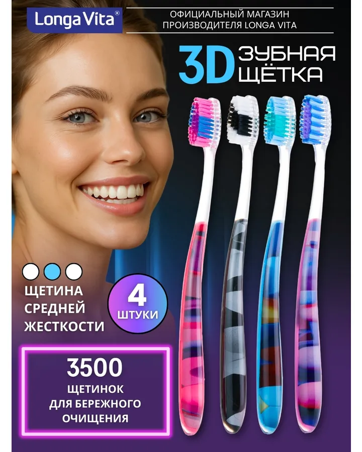 Зубная щетка классическая LONGA VITA от 12 лет 4 шт.