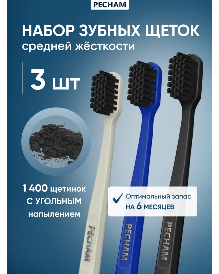 Зубная щетка классическая PECHAMЩётки хорошие, удобные, но они, извините, совсем не жёсткие..☹️, а даже наоборот мягкие. Для тех, кто любит мягкие щётки очень подойдут- дёсна не травмируют.