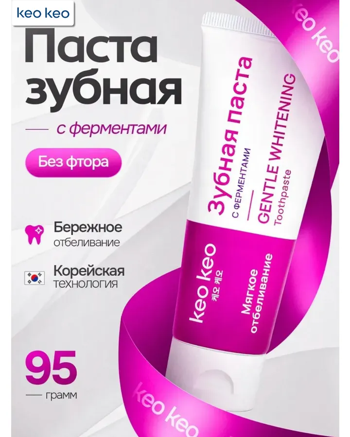 5Зубная паста KEO KEO без фтора 95 гОтличная зубная паста. После первого применения сразу виден эффект, думаю при долгом использовании он закрепится