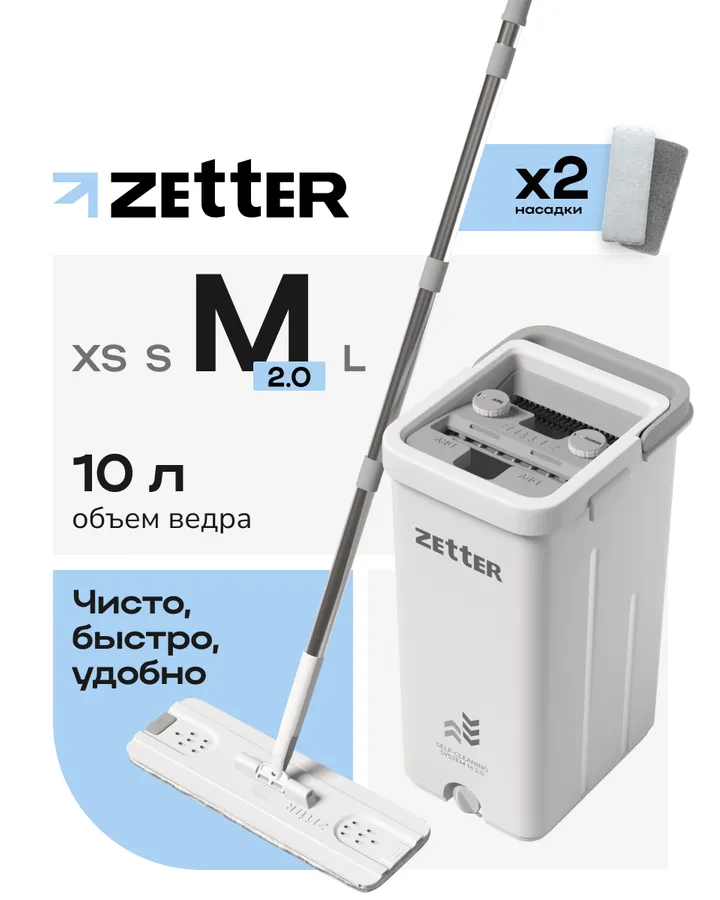 Швабра с отжимом и ведром Zetter XS 2.0 (5,5 л)Замечательная швабра