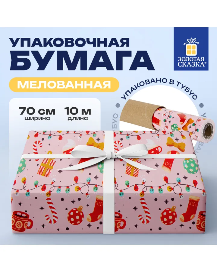Бумага оберточная Феникс-Презент Новый год мелованная 70*100см в ассортименте