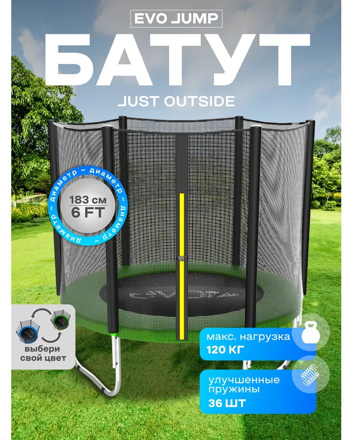 Батут каркасный EVO JUMP EVO jump External 6ft green с защитной сеткой, диаметр 183 см
