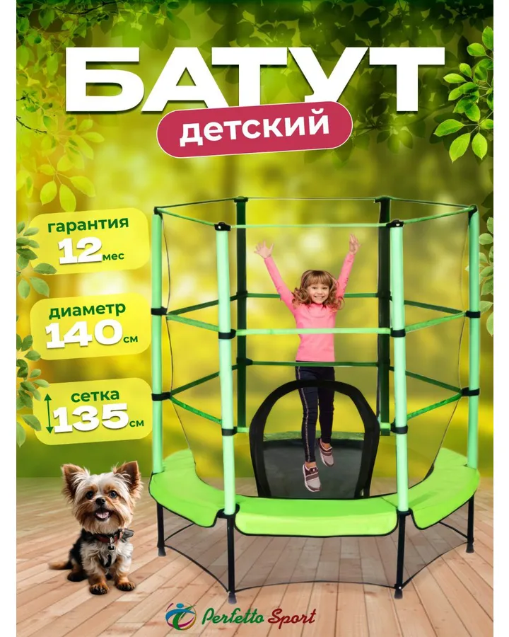 Батут каркасный Perfetto Sport с защитной сеткой зелёныйХороший,качественный