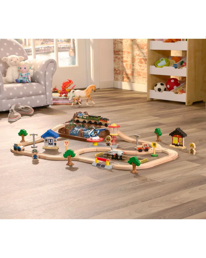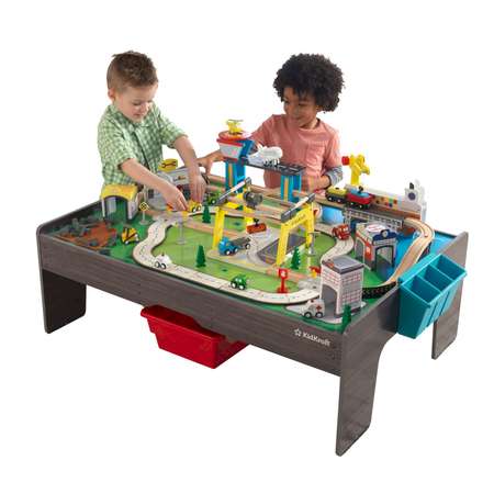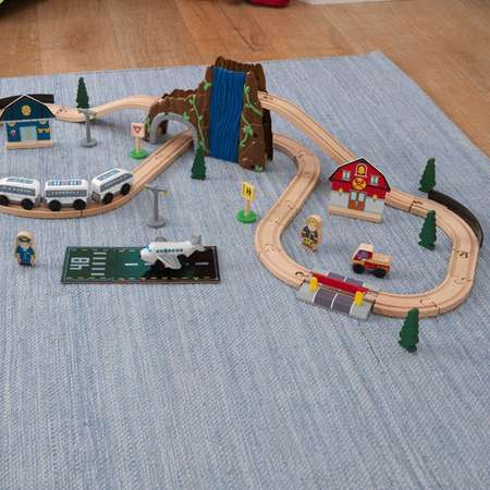 Набор железнодорожный KidKraftЖелезная дорога - это просто потрясающий набор для нашего сына! Он обожает строить городки и приключения с поездами. С этим набором он создал целый мир с горами, озерами, вертолетной площадкой и множеством маленьких фигурок. Качество деревянных деталей на высоте, и это добавляет радости в его игру.