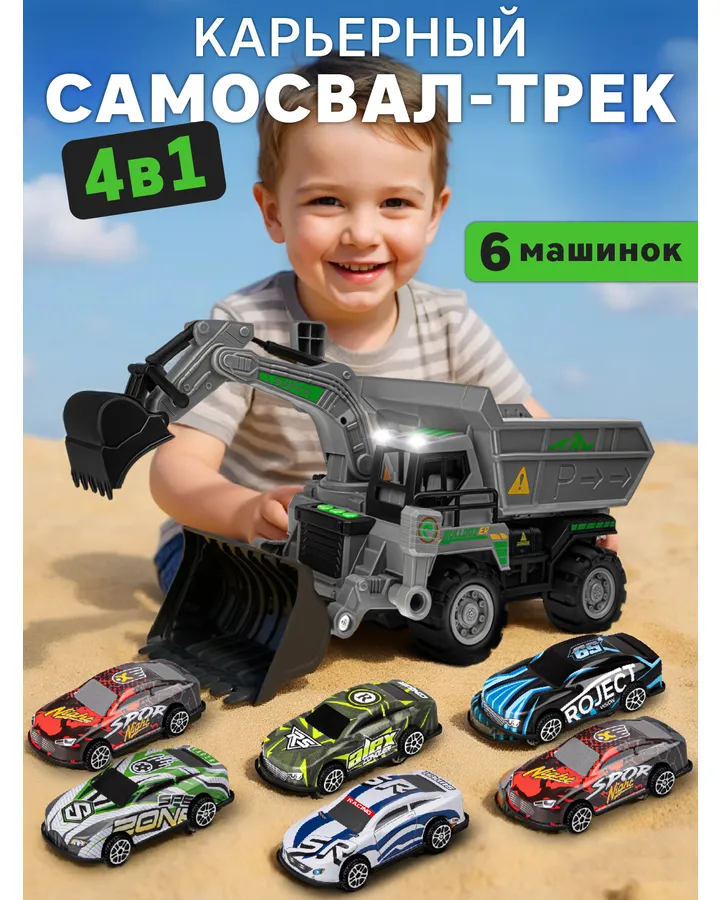 Фигурки динозавров и музыкальный автовоз с машинками 3в1 TrendToys