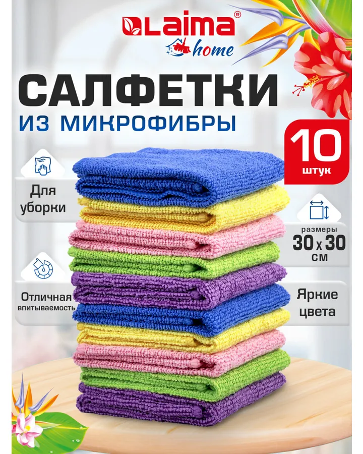 Салфетки для уборки Лайма универсальные из микрофибры 30х30см 10 шт