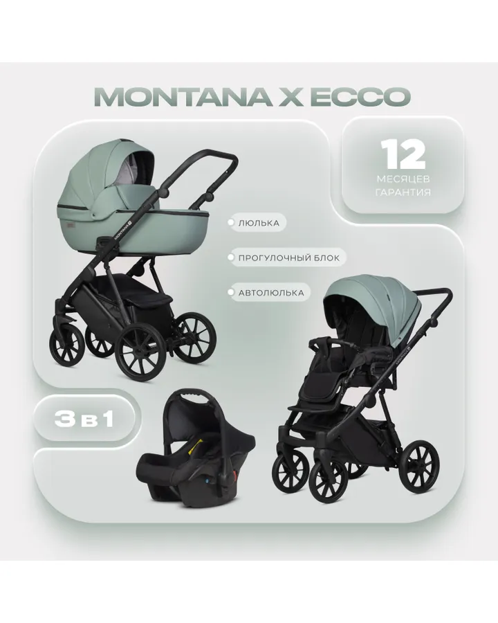 Коляска 2в1 Riko Basic Montana X Plus зеленый