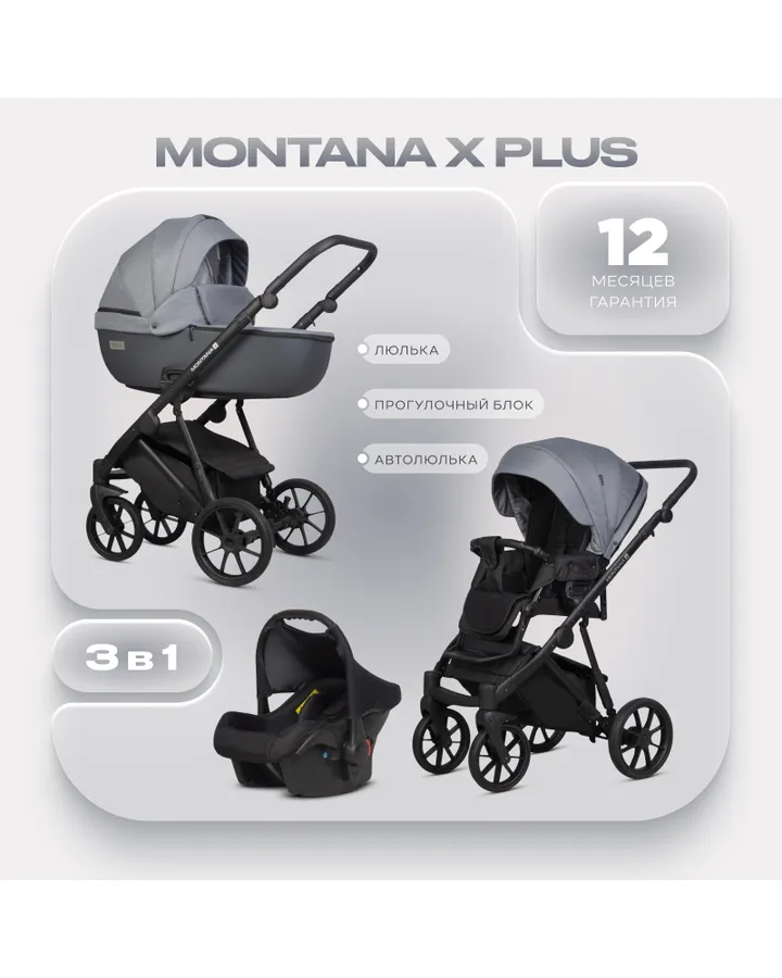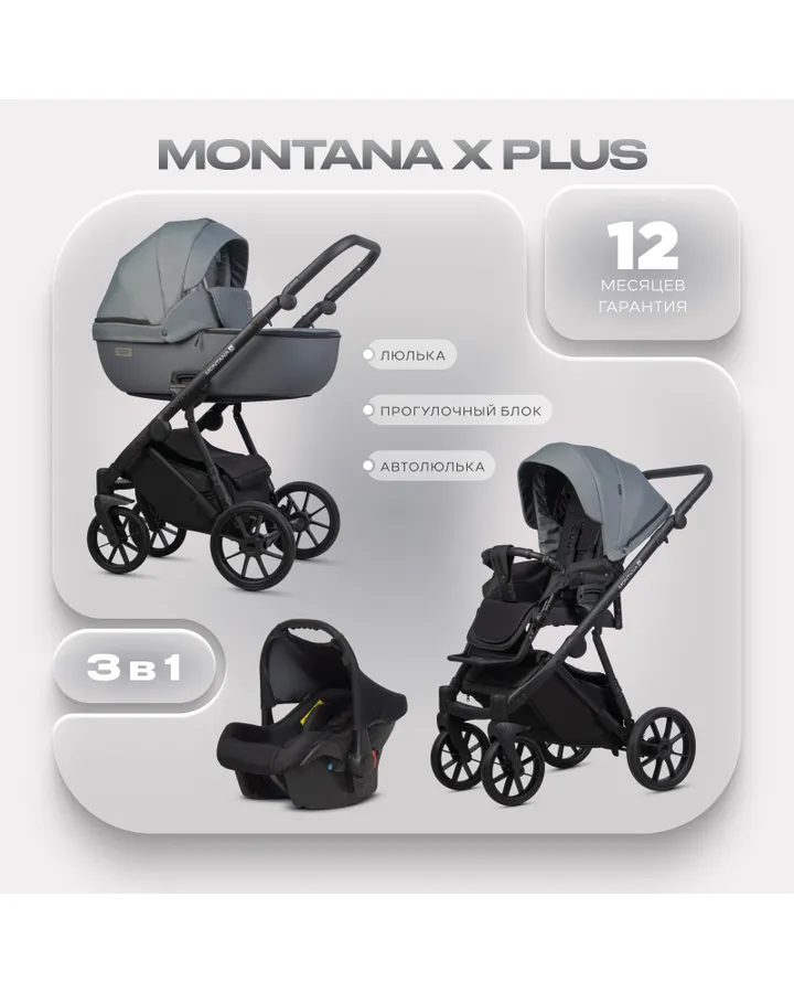 Коляска 2в1 Riko Basic Montana X Plus серый