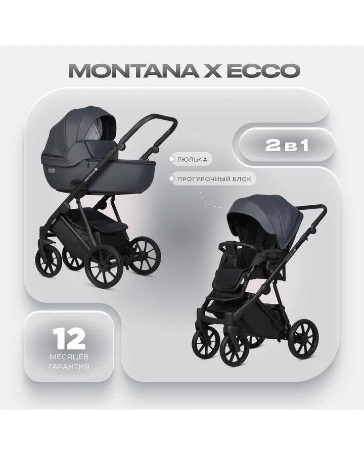 Коляска 2в1 Riko Basic Montana X Ecco Prestige серый