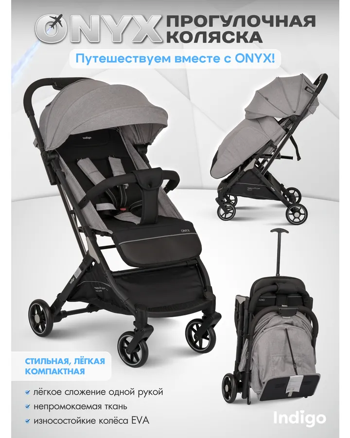 Коляска прогулочная Indigo TRIP для путешествий, с.-серый серый