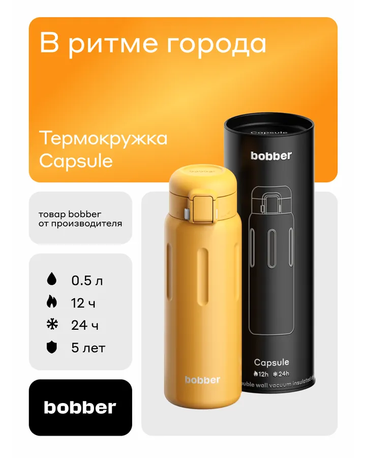 Термокружка для напитков Capsule 500 мл Bobber оранжевый