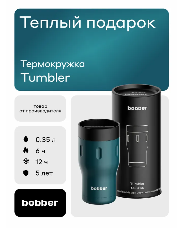 Термокружка 350 мл для напитков Tumbler Bobber темно-бирюзовый