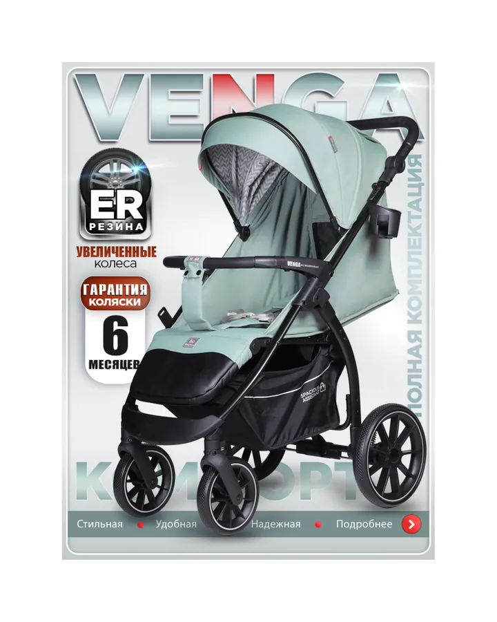 Коляска прогулочная BabyCare Venga Серый Меланж серыйУдобная, легкая и очень маневренная