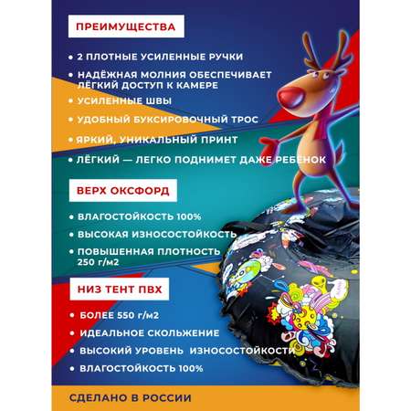 Этот тюбинг просто замечательный! Мой ребенок в восторге от него. Качество изготовления на высшем уровне, все швы аккуратно проклеены. Очень удобно насосить воздух и быстро спустить, когда не нужно. Преимущество в том, что он вмещает двух детей одновременно, так что игра становится еще веселее.