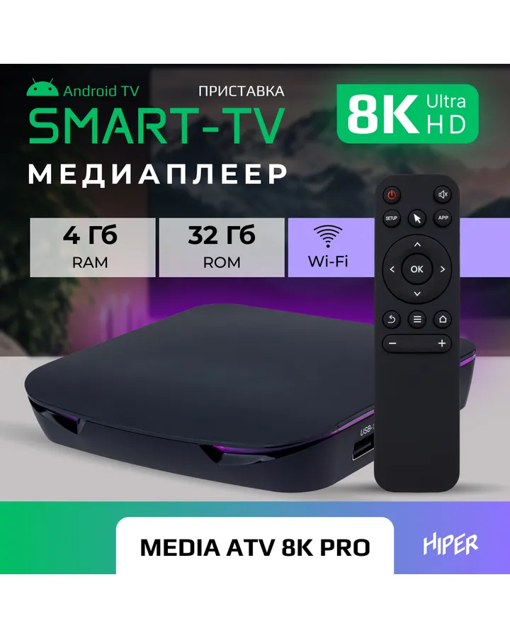 5Медиаплеер с голосовым пультом Большое ТВ 300xGPОтличная приставка. Много каналов, платить не надо за них)Есть Ютуб, дочка смотри пеппу свою там