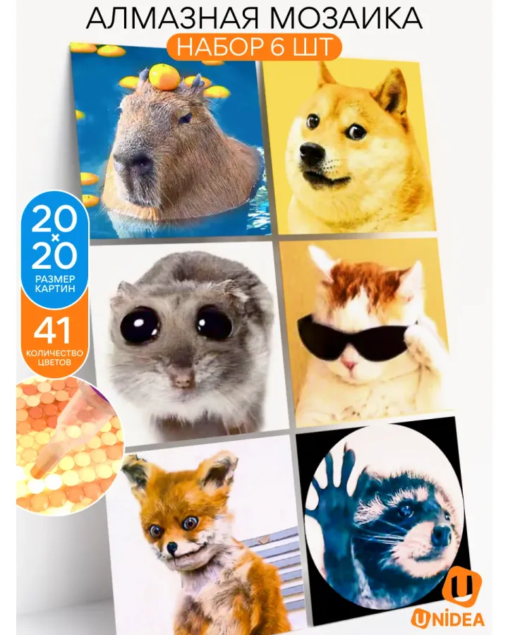 Алмазная мозаика UNIDEA Мемные животные в ассортименте